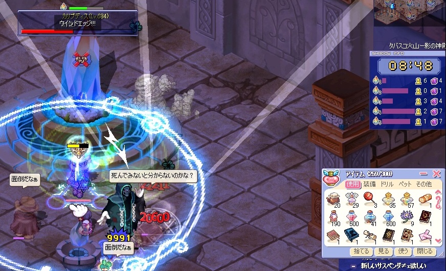 2.大量のマナPOT、HPPOTが必要、消費が半端ない(ウインク対策含む)